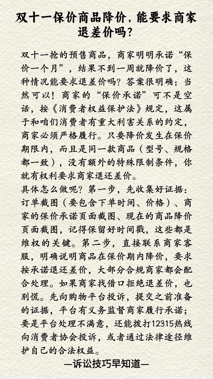 诉讼技巧早知道114|双十一保价商品降价,能要求商家退差价吗