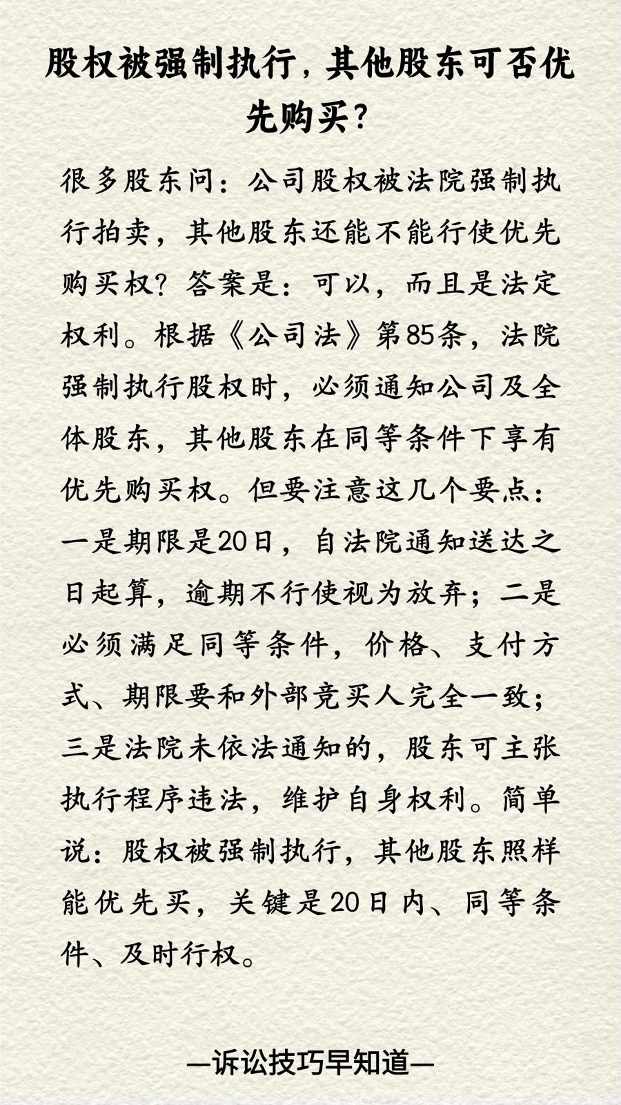 诉讼技巧早知道206|股权被强制执行,其他股东可否优先购买?