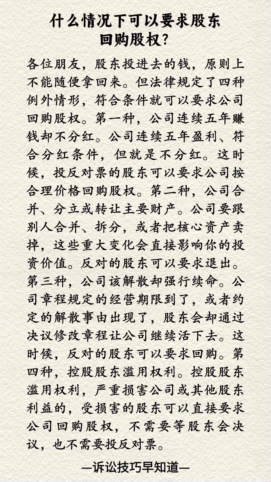 诉讼技巧早知道208|什么情况下可以要求股东回购股权?